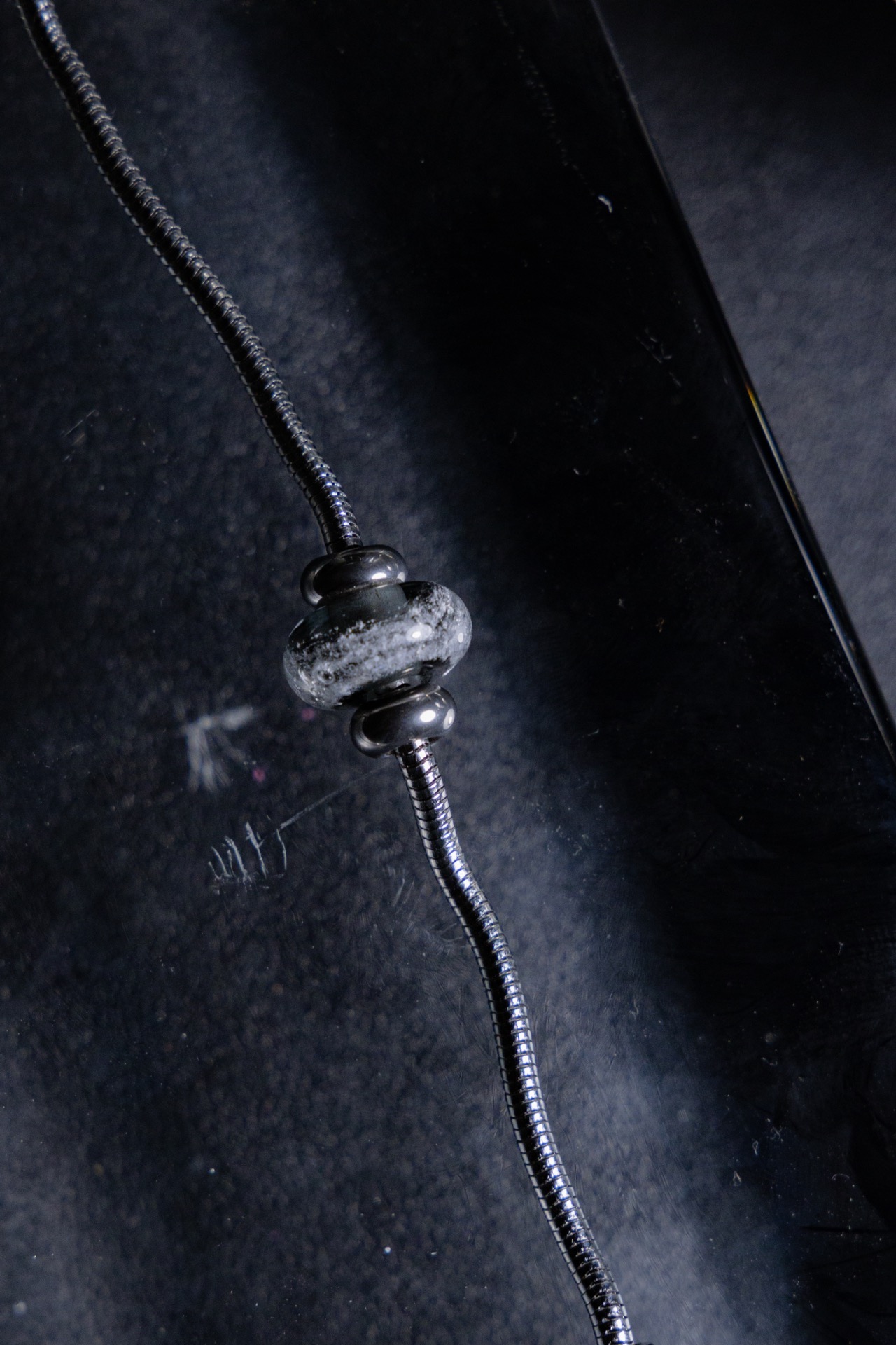 在製作時加入毛髮/骨灰使其隨著高溫與玻璃溶合而成形的