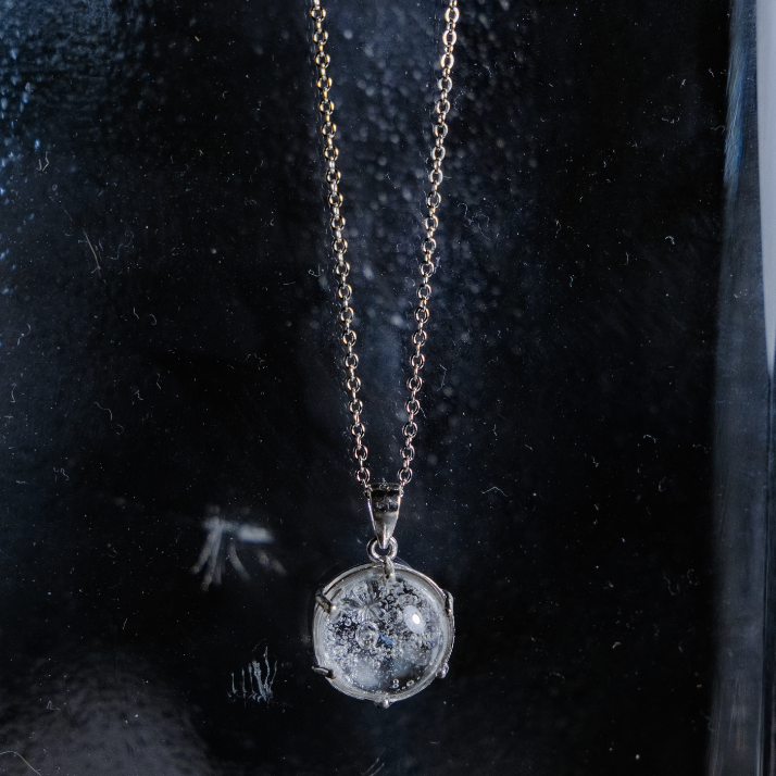 在製作時加入毛髮/骨灰使其隨著高溫與玻璃溶合而成形的