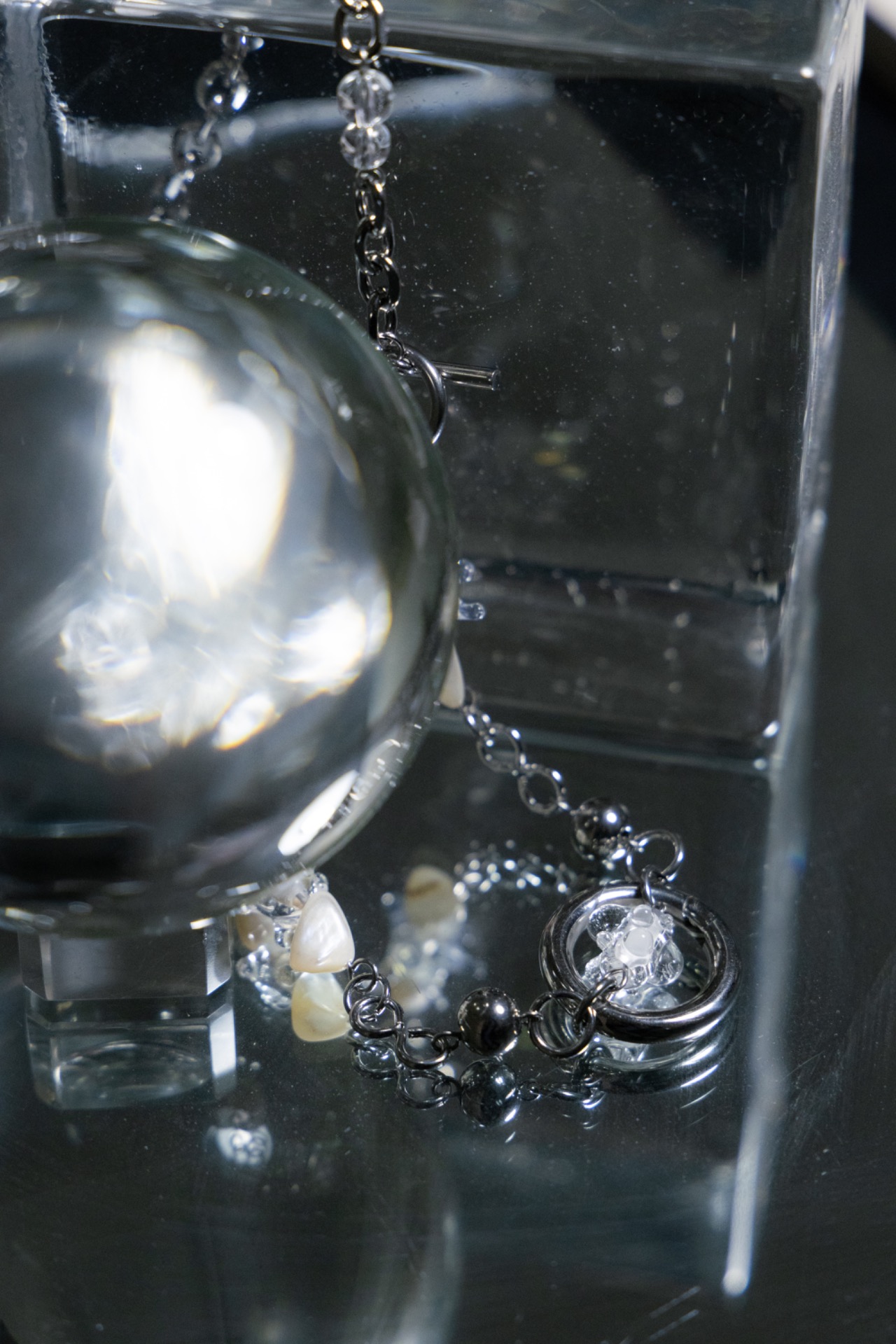 材質: 玻璃、鈦鋼及不銹鋼鏈材