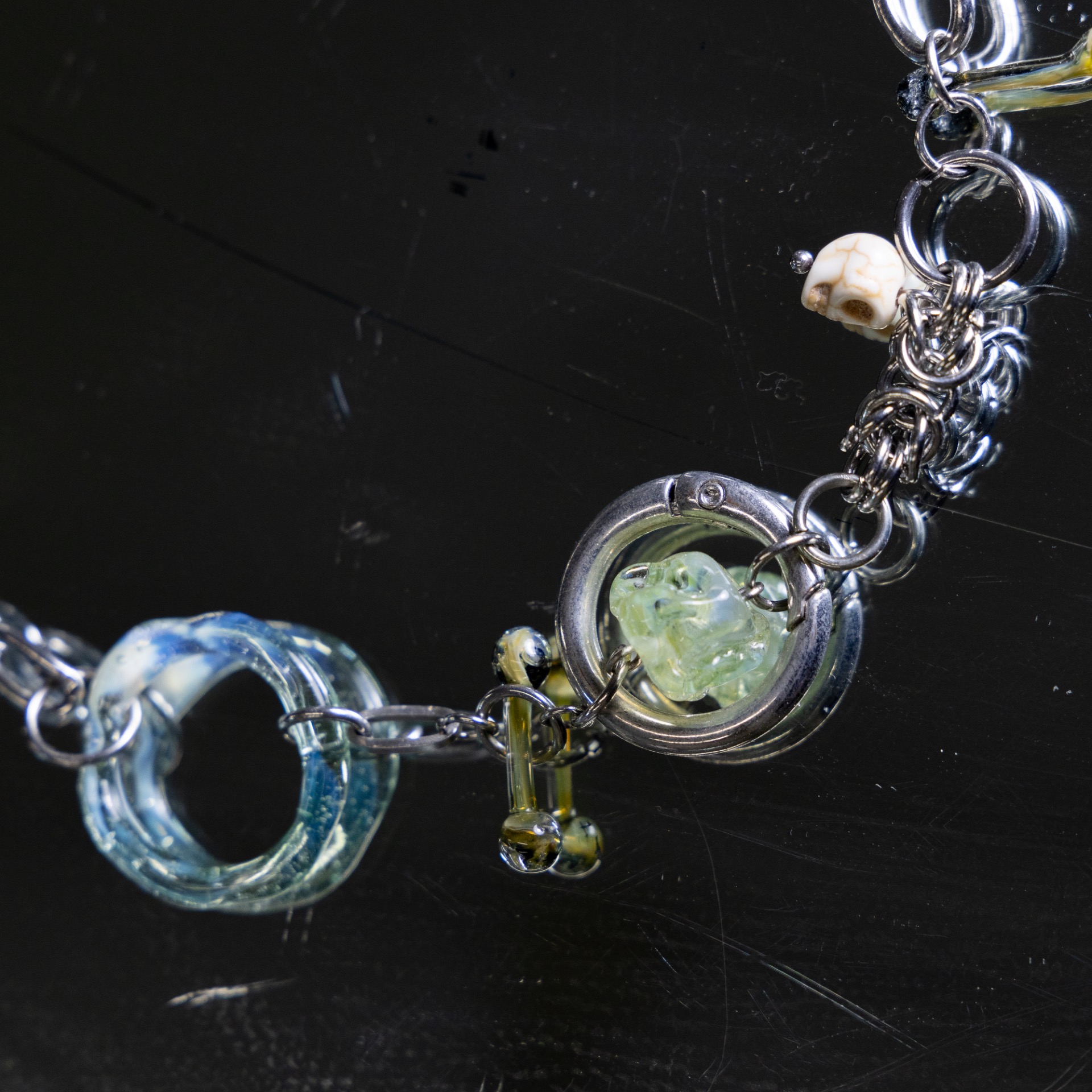 材質: 玻璃、鈦鋼及不銹鋼鏈材
